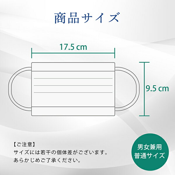 製品構造 ・立体プリーツ加工 ・3層フィルター構造 【耳にやさしいバンド】丸く弾力性のある素材で長時間着用でも耳が痛くなりにくい 【ノーズワイヤー入り】鼻の形にフィットしてズレにくく細かい粒子もきちんとブロック 【フロントフィルター】ホコリや咳・くしゃみの飛沫など大きな粒子をまとめてキャッチ 【プレフィルター】粒子捕集性に優れたプレフィルターで花粉など細かい粒子をしっかりキャッチ 【高密度フィルター】極小微粒子を逃さない高密度優しい肌触りで息苦しさゼロ 商品サイズ 横17.5cm×縦9.5cm 男女兼用/普通サイズ ※ご注意:サイズには若干の個体差がございます。