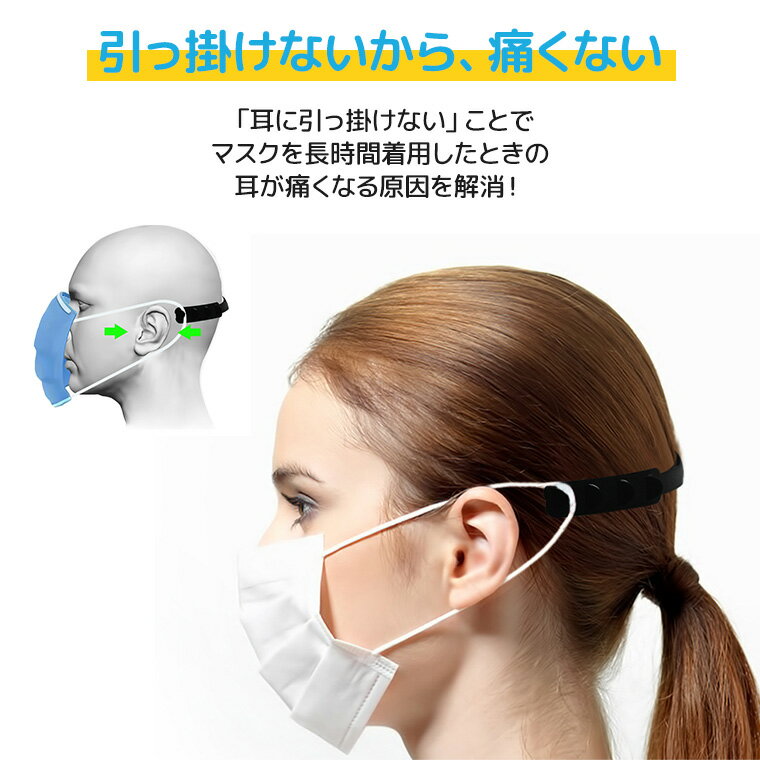 耳が痛くならない マスクのゴムひもを耳にかけなくても使えるようにするマスク用補助バンド。